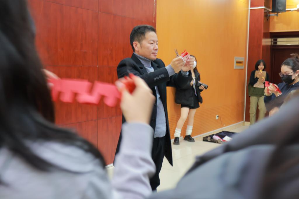 此次活动旨在增进ylzzcom永利总站线路检测中国员工与职工的友谊交流,同时展示中国优秀传统文化的魅力。活动开始,23汉教的同学们轮流献上精彩的演出,一首《最炫民族风》让现场气氛高涨,中国古代文化吟诵《一剪梅》等节目让现场的观众感受到了中华文化的独特魅力,同学们收获满满。随后,剪纸非遗传承人张建志老师和他的助理徐延芳老师向全体参与活动者展示了复杂美丽惟妙惟肖的剪纸作品,同学们积极地向老师提问,现场互动格外活跃,同时他们还体验了如何编织中国结,体验之余,《你画我猜》《abcd》《大小西瓜》等游戏依次展开,同学们在活动中展现才华和热情,也在互动中加强与各国青年的友谊交流。